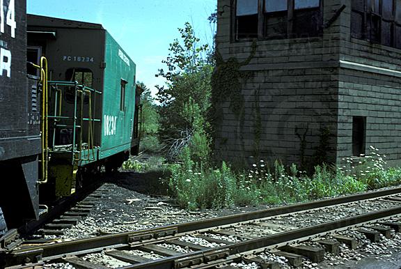The FW13 local is running caboose lite down to Mexico, IN as it crosses the diamond with the ex EL(Erie Western at the time of the shot) and the old tower at Newton, IN. The ex EL track still exists today as a very long siding off the ex CR Marion Branch to serve an asphalt refinery in nearby Laketon, IN. Kim Heusel photo with permission