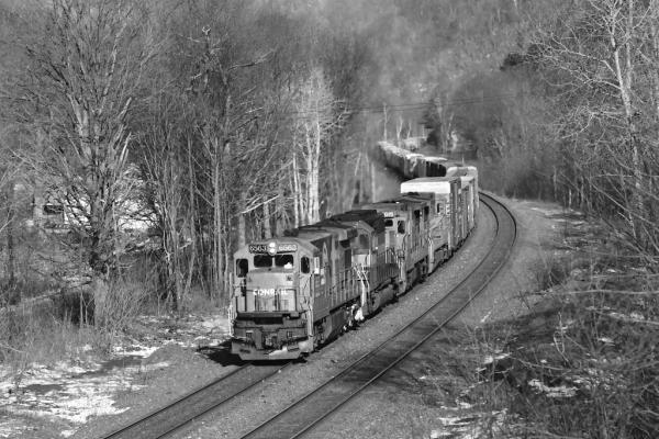 At South Bend, IN Conrail shared trackage rights with the Grand Trunk Western for a mile a half thru town along the Chicago line, an arrangement that had been around since the GTW first built to South Bend in 1880. An example of that arrangement is here at MP 437 as GTW westbound freight behind GP40-2 No. 6422 (ex DT&I) rolls west through South Bend, in June 1998. Doug Davidson photo with permission