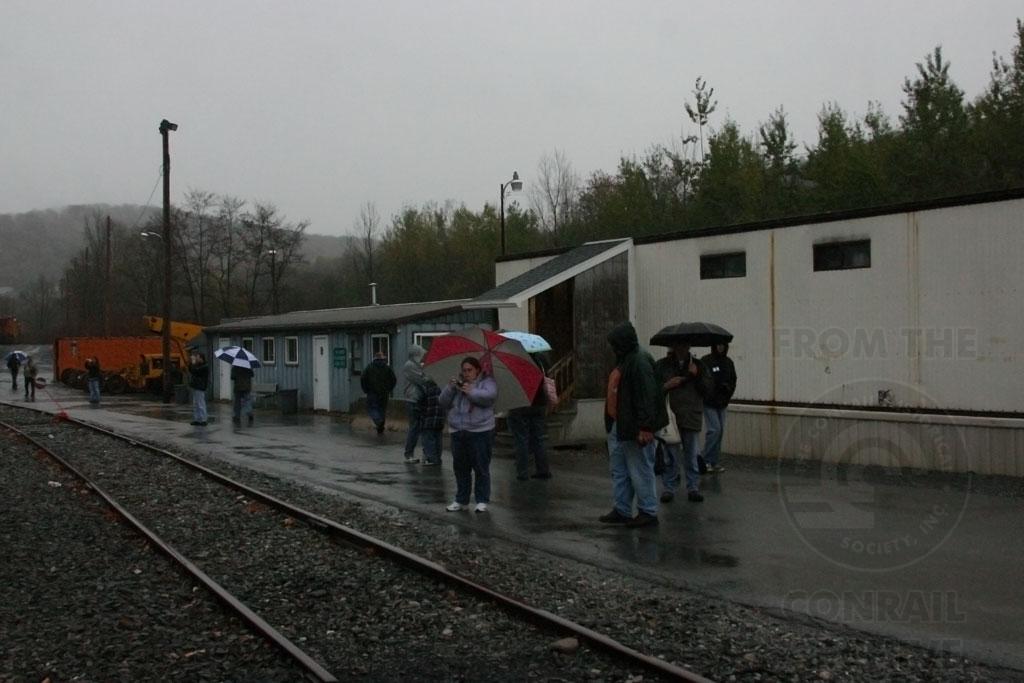 Previous Next A little rain didn't get in everyone's way. Umbrellas abounded, but everyone still had a good time. Photo By Ed Kapuscinski Collection CRHS Conrail Photo Archive Contributions