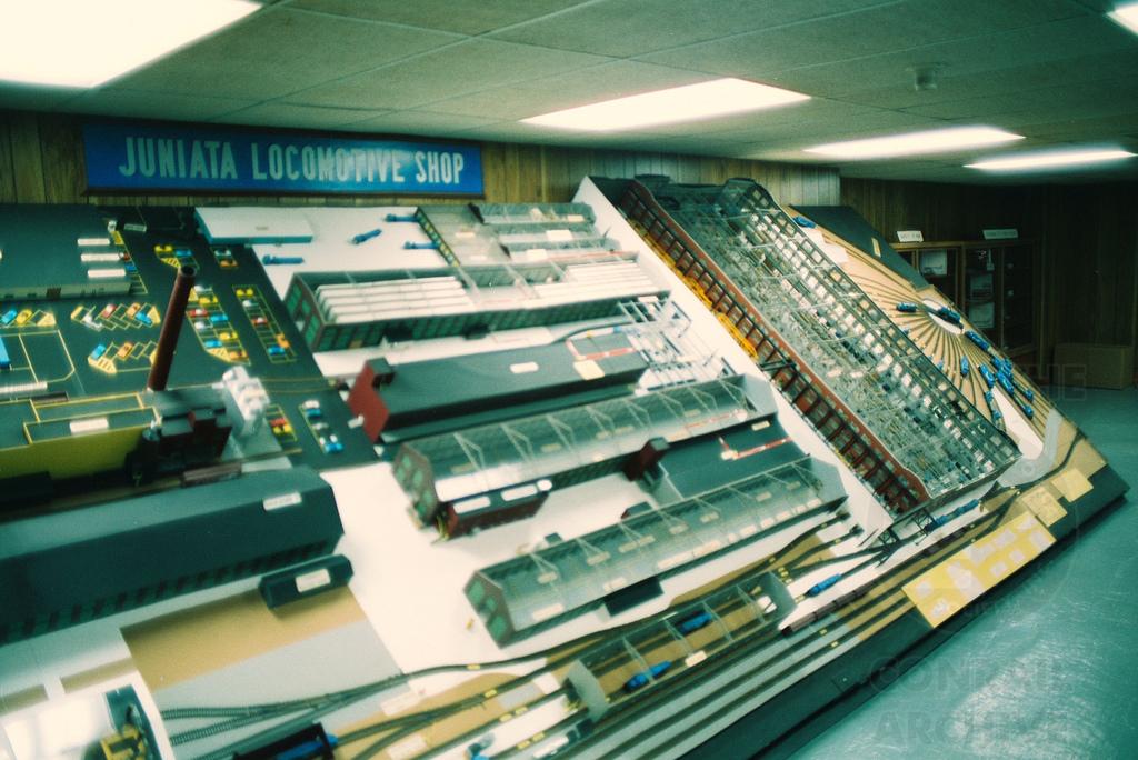HO model of the Juniata Shops built by Conrail on Oct. 3, 1994. This diorama still stands today, albeit with NS diesels populating it now. Doug Davidson photo with permission
