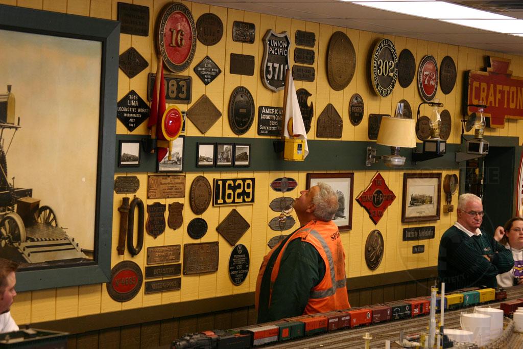 Previous Next Photo By Ed Kapuscinski The Altoona Association of Model Railroaders has an extensive collection of locomotive number plates. Here founding CRHS member Kermit Geary inspects their collection. Collection CRHS Conrail Photo Archive Contributions