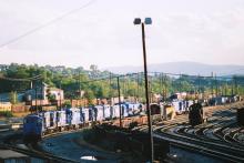 The locomotive deadline at Conrail's Altoona Yard on September 29, 1994. While there are no numbers discernable, it appears there are several GP30's, a U23B, a couple EMD switchers, and several rebuilt GP8's and GP10's. Doug Davidson photo with permission