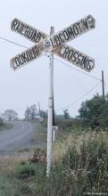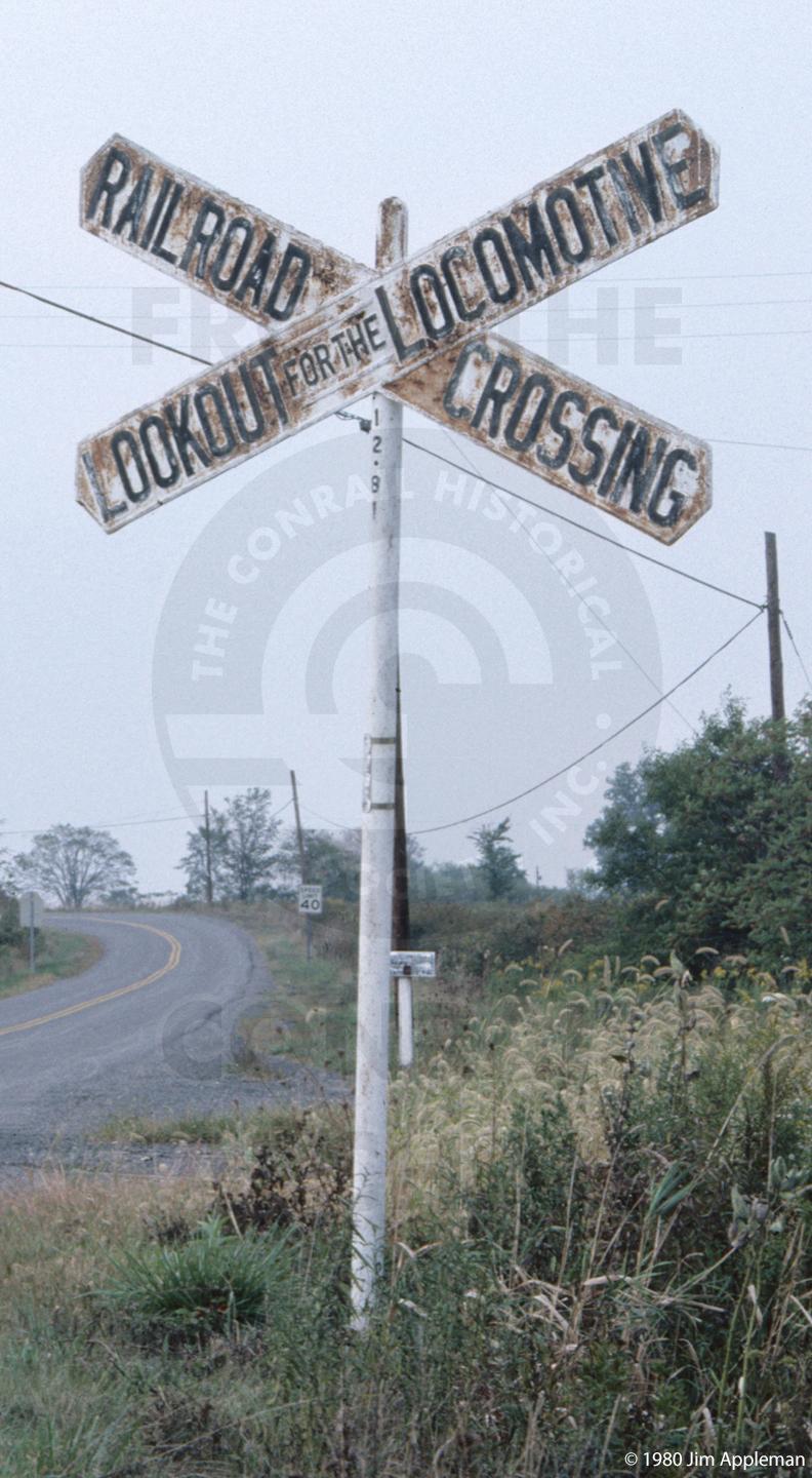 Old fashion crossbucks give a warning at the crossing at M.P. 12.81, the first crossing east of Strawberry Ridge, PA.