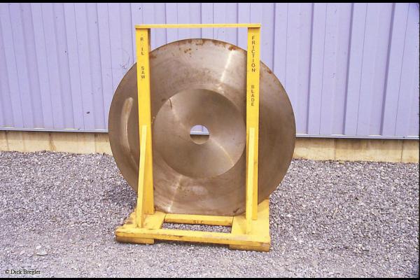 An overhead view of the outside storage area where new and fit rail is stockpiled according to weight and class.