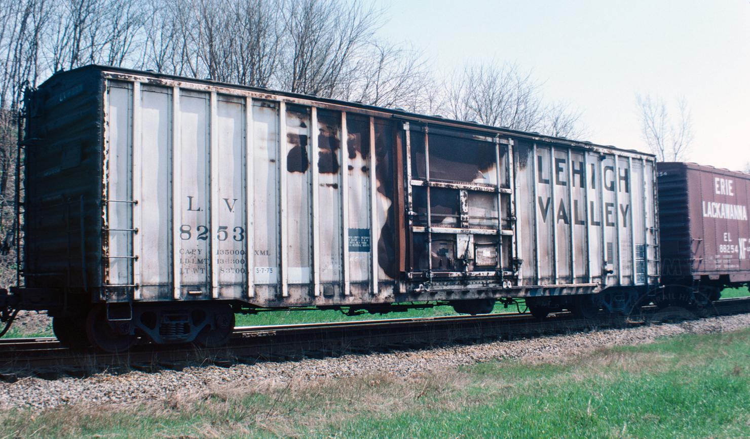Previous Next Photo By Unknown photographer collection of Jeff Weaver LV 8253 was photographed in storage at Youngstown, OH in April 1980, awaiting scrapping. Year 1980 Original Date 4/1/80 Equipment Type Class X58B (LV Cars) Predecessor Paint Scheme LV Collection CRHS Conrail Photo Archive Contributions