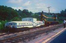 Conrail contracted with foriegn railroads for scale testing. Among those companies that I tested was the Green Mountain/Vermont Rail System. The GMRC had five scales on its lines located at Riverside (once the home of Steam Town) Ludlow, Center rutland and Florence. Here we are in the process of testing GMRC's Riverside scale with CR80092 on 7/14/ 1994