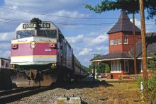 Previous Next Photo By Rich Bowes MBTA 1056 EMD F40PH-2C Franklin Branch Walpole MA with unknown train Year 1995 Original Date 7/1/95 Location Walpole MA Subject(s) Foreign Power on Conrail Collection CRHS Conrail Photo Archive Contributions
