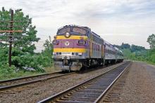 Previous Next Photo By Rich Bowes MBTA 1113 EMD FP10 Boston Line Weston MA with MBTA train 453 Year 1982 Original Date 6/1/82 Location Weston MA Subject(s) Foreign Power on Conrail Collection CRHS Conrail Photo Archive Contributions