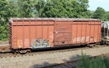 MSDR 192064 is seen in the consist of NS 12R at Marysville, PA. Car is ex BCRX 159061/CR 159061/PC unknown and was built 10-72 by P-S as part of Lot 9602. Car was built as a PC X75 class box.