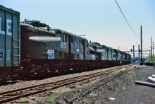 Former CR/PC/PRR 4822 and 4885 are seen at Reily St., Harrisburg, PA, on 5/4/1982 being shipped to Naporano Iron & Metal in Newark, NJ for scrapping.
