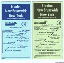 Following the "Trenton to New York" timetable transition from the April 26, 1976 "ConRail" logo to the October 31, 1976 "CONRAIL" with wheels on rails logo, a third revision of the timetable in April 24, 1977 again shows the familiar "CONRAIL" with wheels on rails logo.