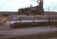 CR-operated NJDOT E-8A 4305 (ex-PC 4272 rebuilt by ICG 10/1978) rests with sister E-8A 4253 (ex-PC 4258 rebuilt by ICG 9/1978) at South Amboy in March, 1981.