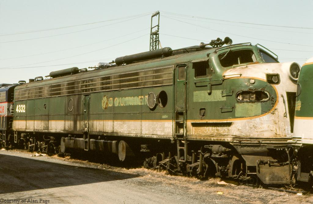 The pride of the Southern Railway's Southern Crescent has come to rest at Elizabethport, NJ for retirement in April, 1983. Ex-SR E-8A 6904, with NJ Transit number 4332, joined CR's contracted ex-PC E-8A fleet in 1980.