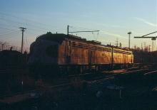 NJDOT E-8As 4333 and 4331, former Southern Railway 6903 and 6907, rest late in the day at South Amboy in March, 1982. Rebuilt by ICG in 1978, the E-8A's that pulled Southern's Crescent Limited joined the fleet of Conrail's contracted GG-1's and E-8A's to serve North Jersey commuter service.