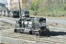 NS remote control engine 5257 is heading off to do some switching at Rose in Altoona, PA on Oct. 26, 2008