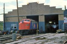 To supplement CR-contracted ex-PC E-units, NJ Transit leased NTSB E-8A 210 (ex-Amtrak 210, nee-B&O 1463) until May, 1981. The E-unit receives service alongside repainted ex-PC E-8A's at the South Amboy engine facility in August, 1979.