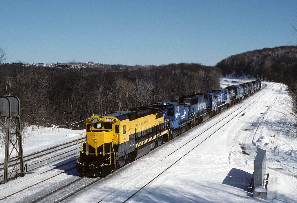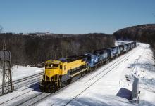 Seeing groups of dead units heading for JBS was nothing new through Cresson, Pa., but what brought up the rear of this one caught my eye. The bright yellow NYSW B40 really stood out in the blue crowd.