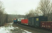 With PWSE still rolling by, his opposite, SEPW appears at 15:11 working upgrade at the Old Dalton Rd. undergrade on Jan. 20, 1990.