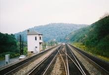 Conrail's SO Tower at South Fork, PA on October 1, 1994, as viewed from the rear platform of an eastbound OCS Train. Doug Davidson photo with permission