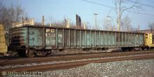 ORER description: Gondola, steel, fixed ends, wood floor, axle spacing 5' 8", truck centers 55' 9", AAR car type code G734, mechanical designation GB. In coil steel service on Conrail train MOPI.