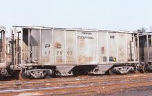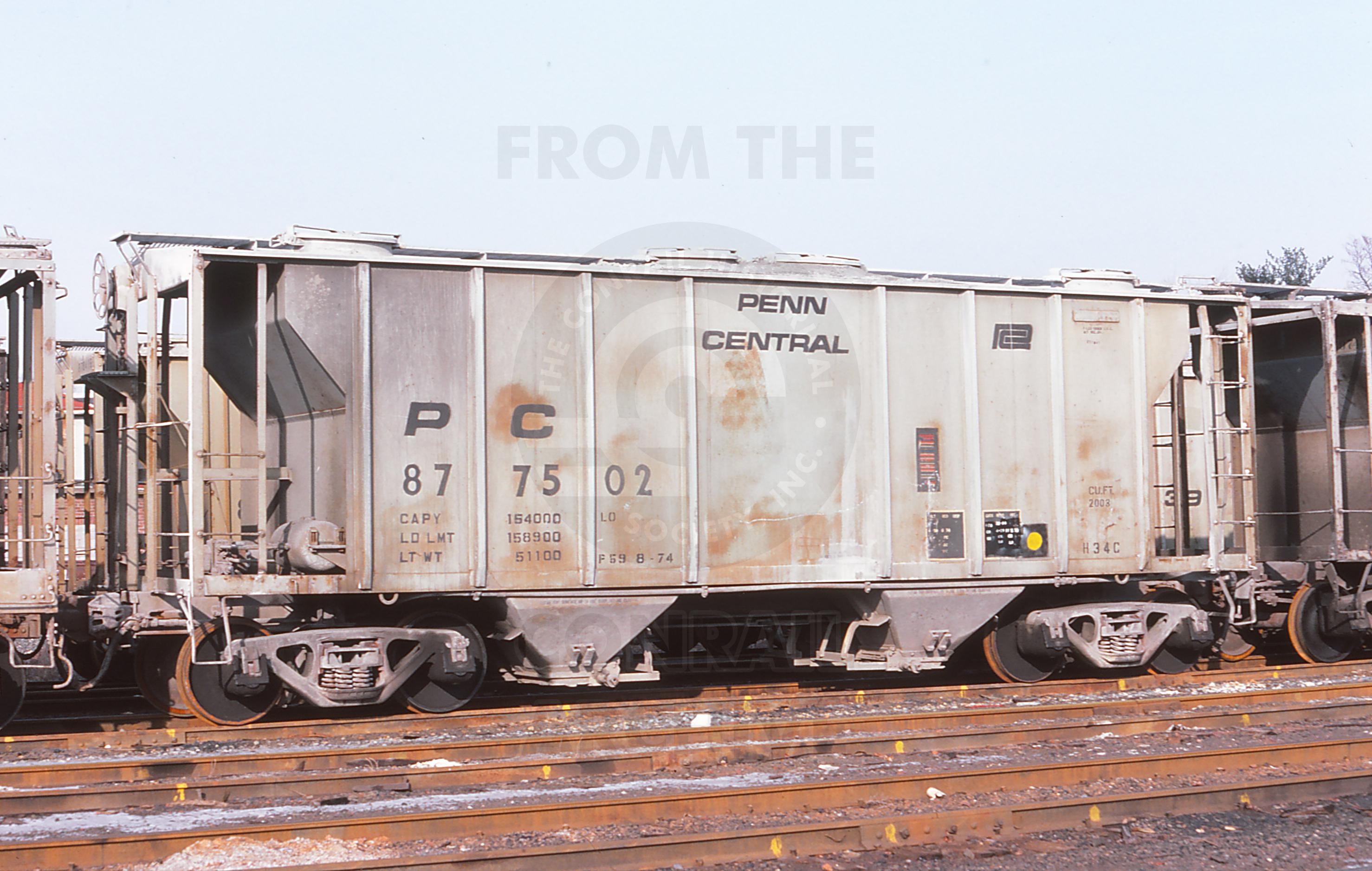 PC 877502 is seen at Kingston, NY in Feb of 1980. Car is exPRR 257847, built 4-58 by P-S and was painted P59 8-74.