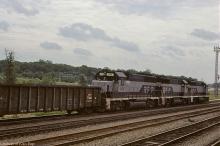 RF&P GP40 123, GP35 131, and GP40-2 146 pull a mixed freight, including a PC 65' Gondola, through Acca yard in Richmond, VA in June, 1978.