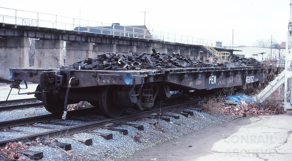 PRR 469752 is seen at Lancaster PA on 12/12/97. Car was built 2-56 and went to CSX.