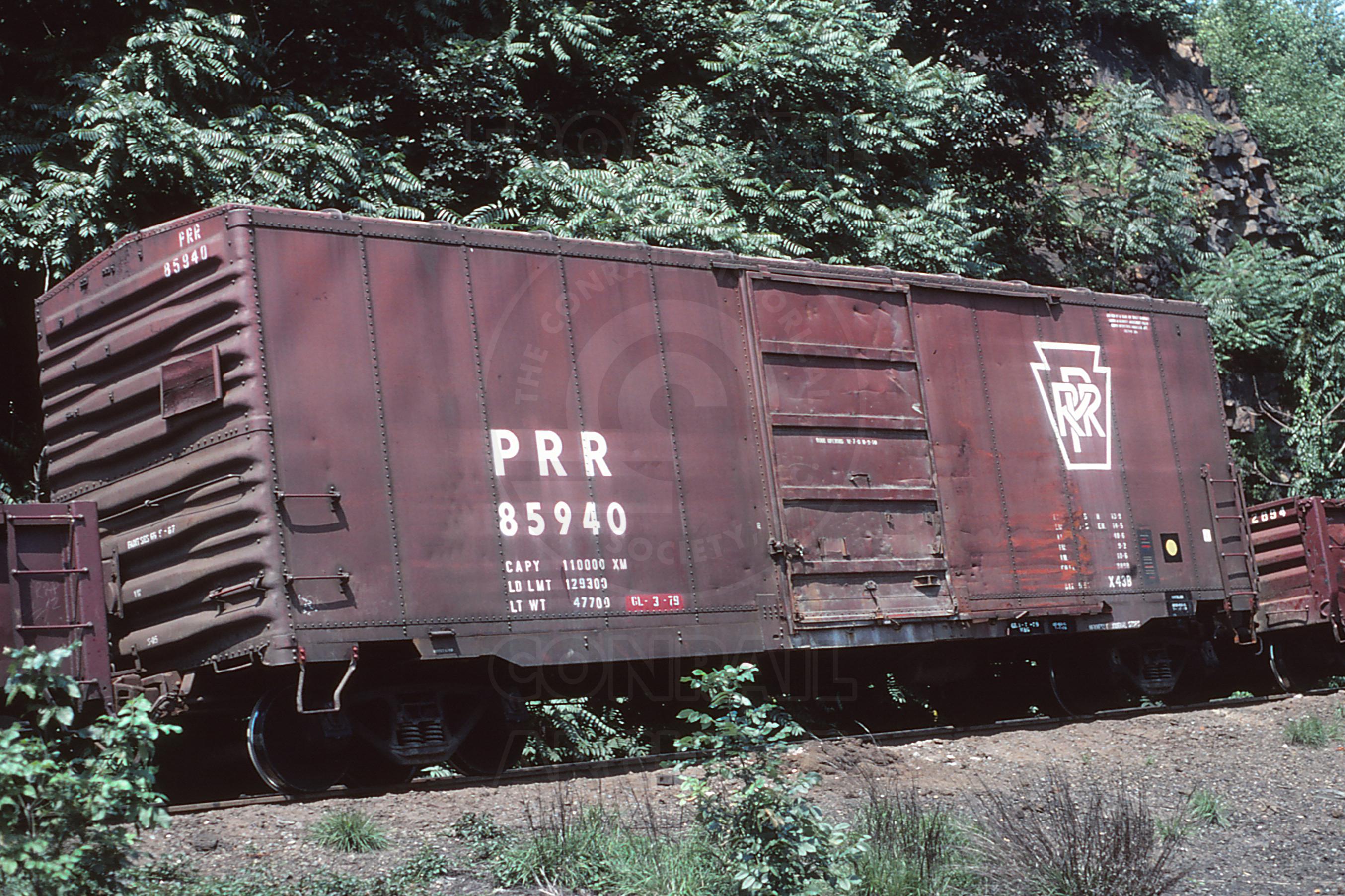 Previous Next Photo By Unknown photographer collection of Jeff Weaver PRR 85940 is seen at an unknown location in July of 1979. Year 1979 Original Date 7/1/79 Equipment Type Class X43B Predecessor Paint Scheme PRR Collection CRHS Conrail Photo Archive Contributions