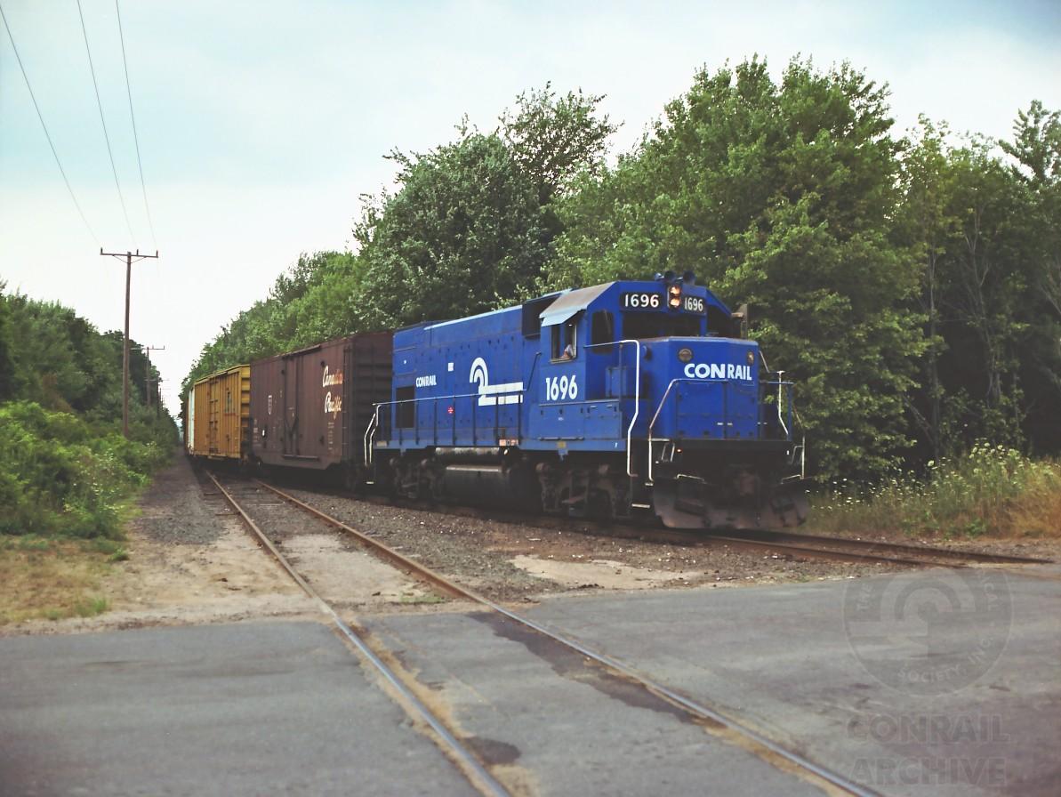 The 1696 has cleared Mather St. and continues shoving his train south.