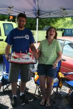 Brock Kerchner holds Linda Sauls' birthday cake while the group gives a HORRIBLE rendition of "Happy Birthday"