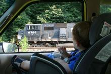 I decided to spend the majority of the day running around myself with Kaden. Here's one of our Buffalo line chase in the hirail. We managed to catch this guy going north and H3W coming south at a PERFECT meet on top of a road crossing at 10mph each. Someday I'll have to get the video of that added... was absolutely amazing!