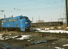 With a RDG 65' gondola behind, CR blue E-8A 4256 leads former PC E-8A's 4326 and 4267 into the South Amboy engine terminal in March, 1978.