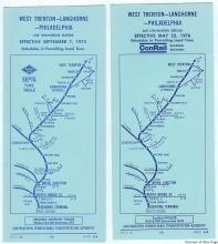 During Septa's Reading Division transition to Conrail-contracted operations in April, 1976, the "West Trenton to Philadelphia" May 23, 1976 timetable shows the Reading Lines diamond replaced with the new "ConRail" logo, with lines above and below. In addition to the logo change, "Reading Division" was added alongside the logo.