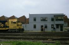 Conrail's Spring Street Yard office is seen in July 1984. ATSF CF-7 2427 is a long way from home in this shot. Bob Gottschall photo from the collection of Steve Ondik, used with permission.