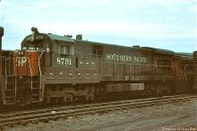 Southern Pacific U33Cs 8791 and 8740 follow behind a former PC GP-38-2 at Enola yard. Leased power from ATSF, CNW, D&H and Southern Pacific were all there on May 7, 1977.