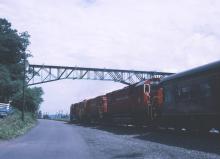 Previous Next SPL171 going away, about to pass beneath the former New Haven/Central New England Poughkeepsie high bridge. Photo By Carl Weber Year 1988 Original Date 7/23/88 Location Details Highland Additional Galleries Carl Weber's ConRail Action Sequence Photography Subject(s) Foreign Power on Conrail Line or Locale Conrail's River Line Collection CRHS Conrail Photo Archive Contributions