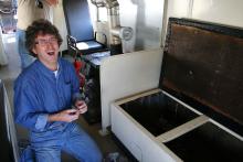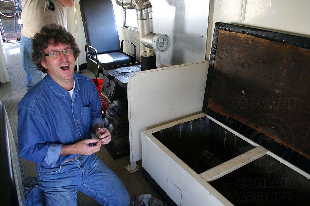 Previous Next Warm inside now! Gert is busy preparing to drain what fuel oil is left in the holding tank. Photo By Kris Klemick Year 2008 Original Date 10/10/08 Collection CRHS Conrail Photo Archive Contributions