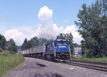 C30-7A 6571 has TV80W all to itself in Hinsdale, MA. on July 18, 1997.