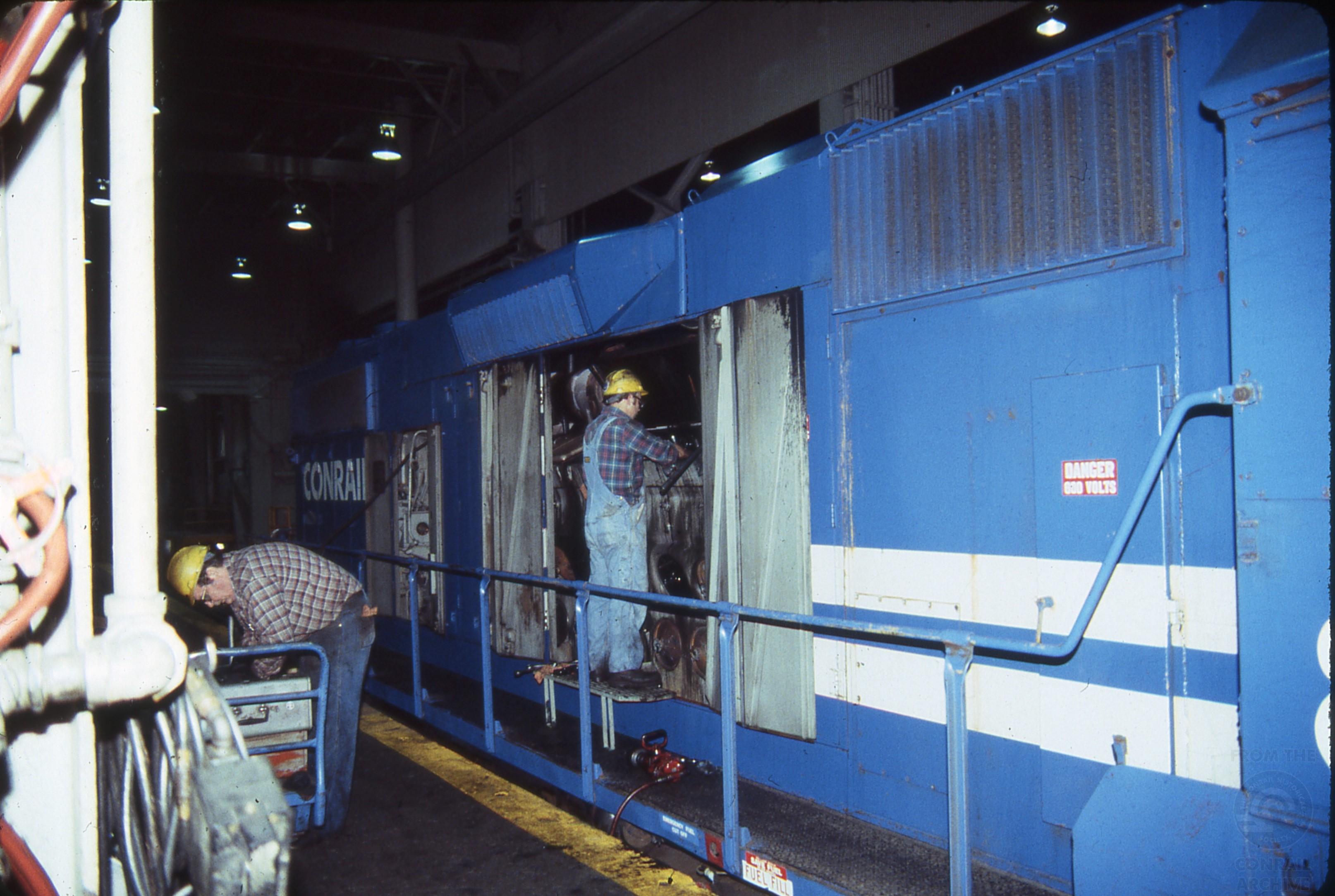Enola Diesel Terminal. Prime mover being worked on. Enola, PA. May 5, 1986