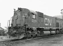 CN 2315 MLW M636 and another M636 were in Newberry Yard on 11/28/1976.