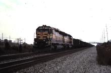 WC 7496 and fellow SD45 leads eastbound UWB-5B near the 344 signals just west of Bryan, OH on October 28, 1998. This was not only a rare iron ore move but also a rare chance of catching WC power on Conrail, which didn't happen very often. Chris Howe photo