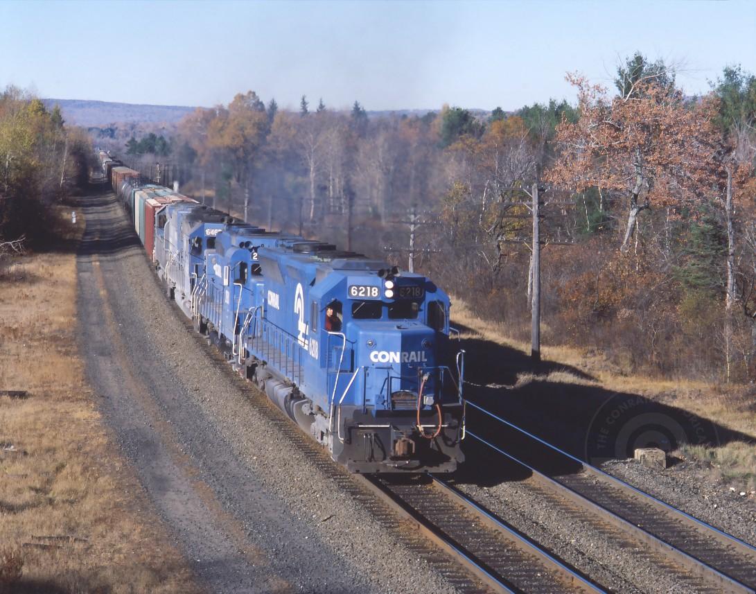 If you hang around long enough, something else is bound to show up. About 1:45 after BOEL disappeared, SEPW comes along with another GP30, but this one is buried, second out, as usual. That SD45 has a number familiar to excursion fans of the late '60's, however it wasn't a diesel. I'm referring to CN 6218, a Canadian National Northern which visited the Central Vermont in 1966 and 1967.
