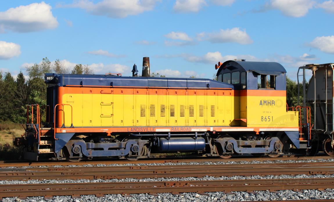 AMHR 8651 is seen on the Landisville Railroad in Landisville, PA on 10/17/14. The unit is ex DCLR 8651/CR 8651/LV 124 which was built as a SW900 and was rebuilt and now classed SW900M.