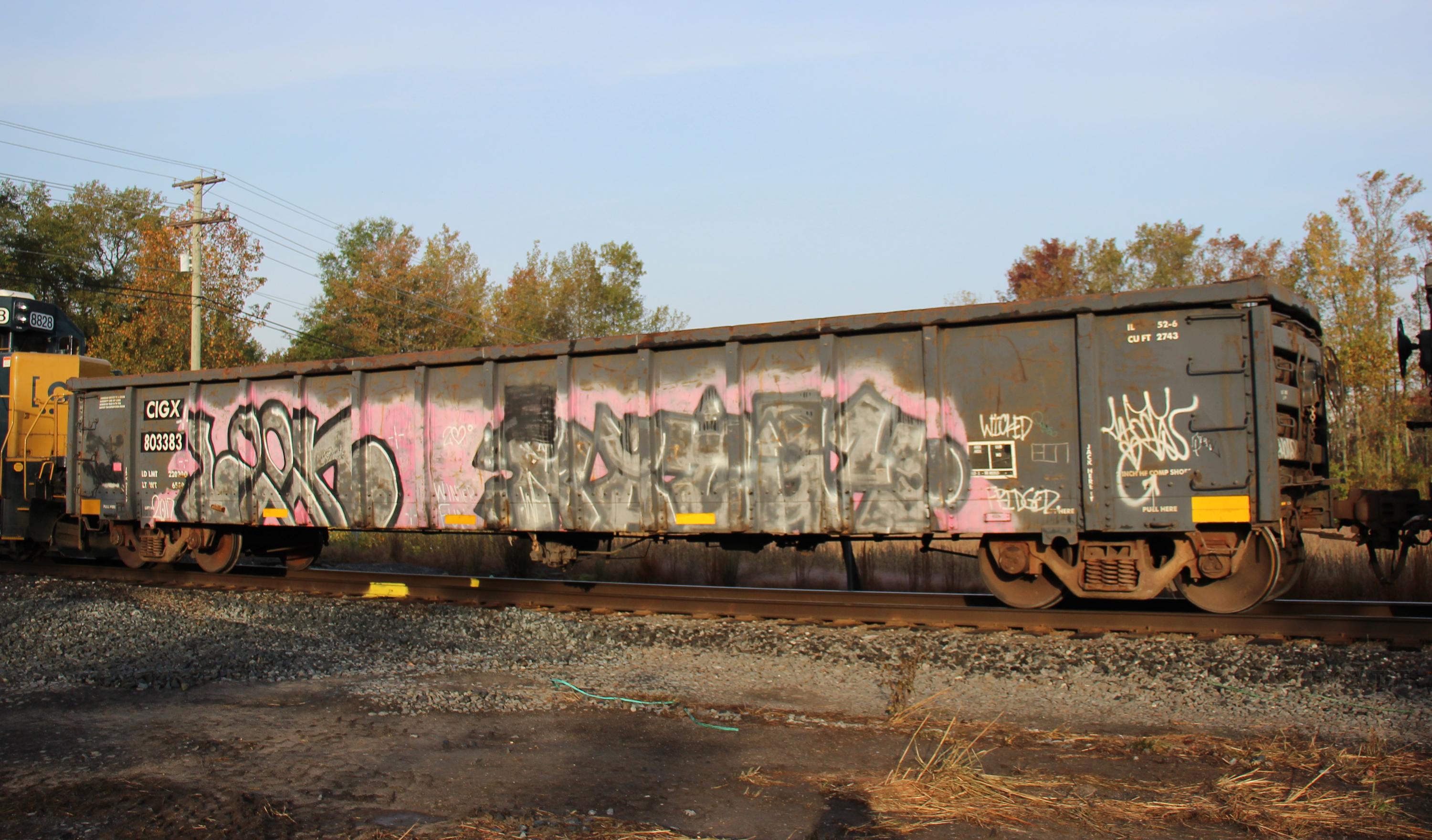 CIGX 803383 is seen in the consist of CSAO CA-11 at Bridgeport, NJ on 10/19/20. Car is ex CR 585763 and was built 2-98 by Trinity.