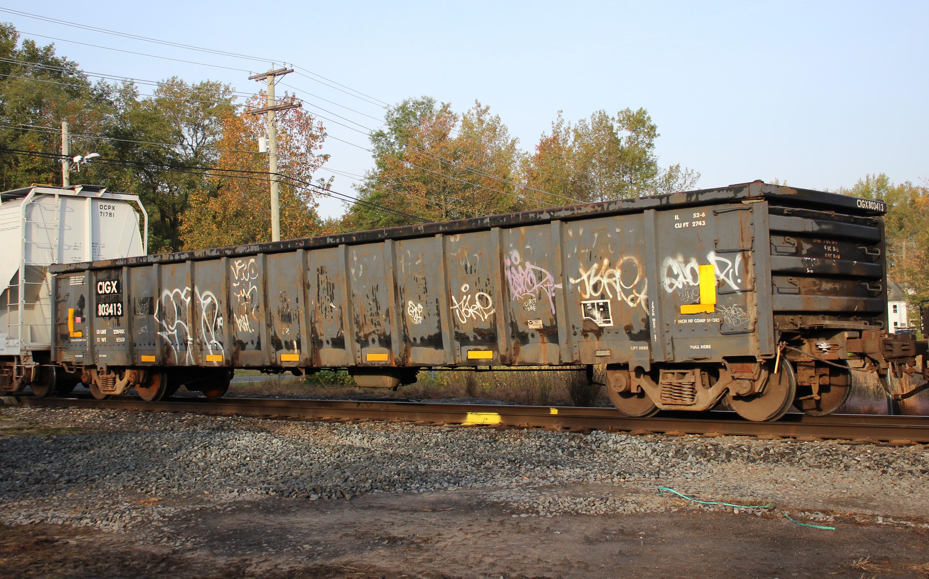 Previous Next CIGX 803413 is seen in the consist of CSAO CA-11 at Bridgeport, NJ on 10/19/20. Car is ex NS 201226/TR 526737/CR 585812 and was built 3-98 by Trinity. Photo By Chris Carangi Location City Bridgeport NJ Conrail Number 585812 Post Conrail Number 803413 Year 2020 Original Date 10/19/20 Collection CRHS Conrail Photo Archive Contributions