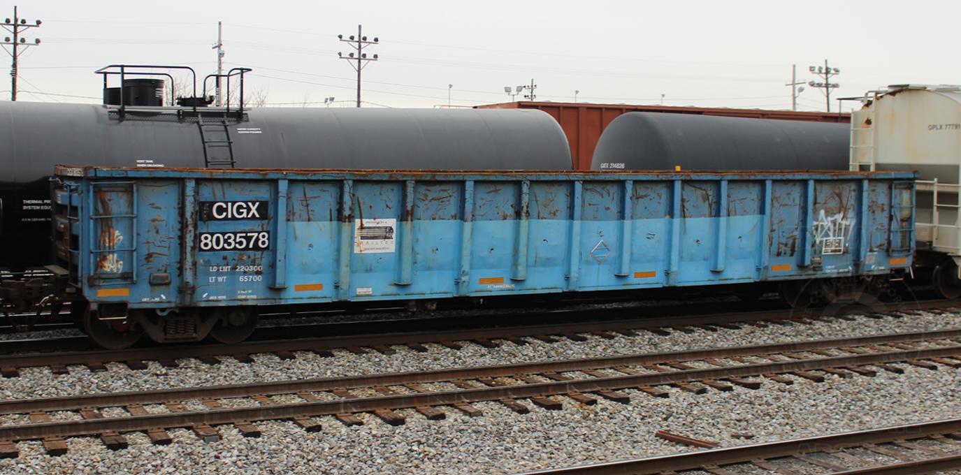 CIGX 803578 is seen in the consist of CSX Q389-04 at Elsmere, DE on 1/5/17. Car is ex NS 201392/TR 585500/CR 585500/CBNS 1301 and was built 1-97.