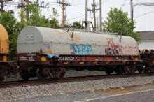 CIGX 805221 is seen in the consist of CSX M409-20 at Newark, DE on 4/21/24. Car is ex CR 623957 and was built 10-97 by Thrall as part of Job 404.