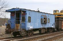 Assigned to a tie train working the Ft Wayne Line, this Conrail survivor has seen better days, although it does sport a horn for crossing protection.