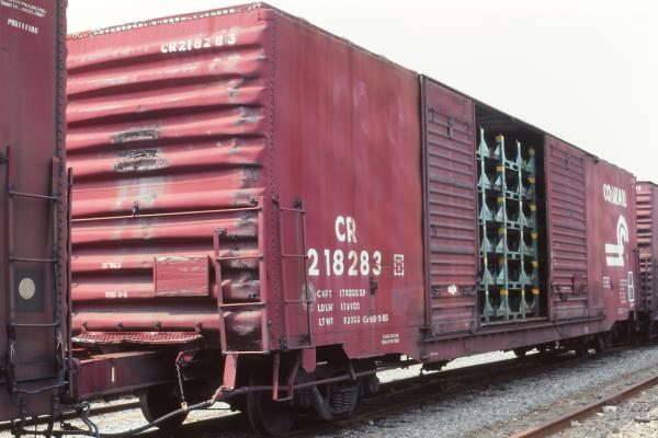 Previous Next Photo By Jeff Weaver Car is ex EL 68102 and was built 4-74. Equipment Type Class BE62D Conrail Number 218299 Post Conrail Owner Norfolk Southern Post Conrail Number NS 218299 Year 2001 Original Date 5/28/01 Collection CRHS Conrail Photo Archive Contributions