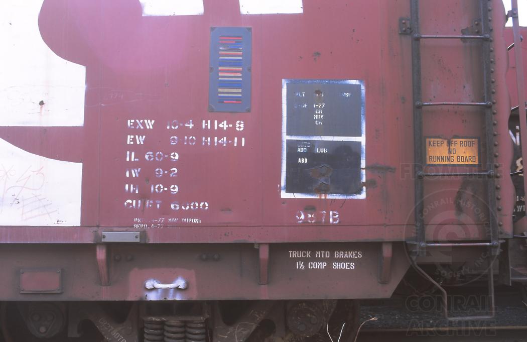 A close-up of the data on this Meadville-painted car (painted 4-77).